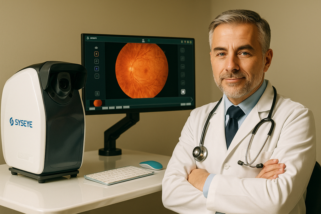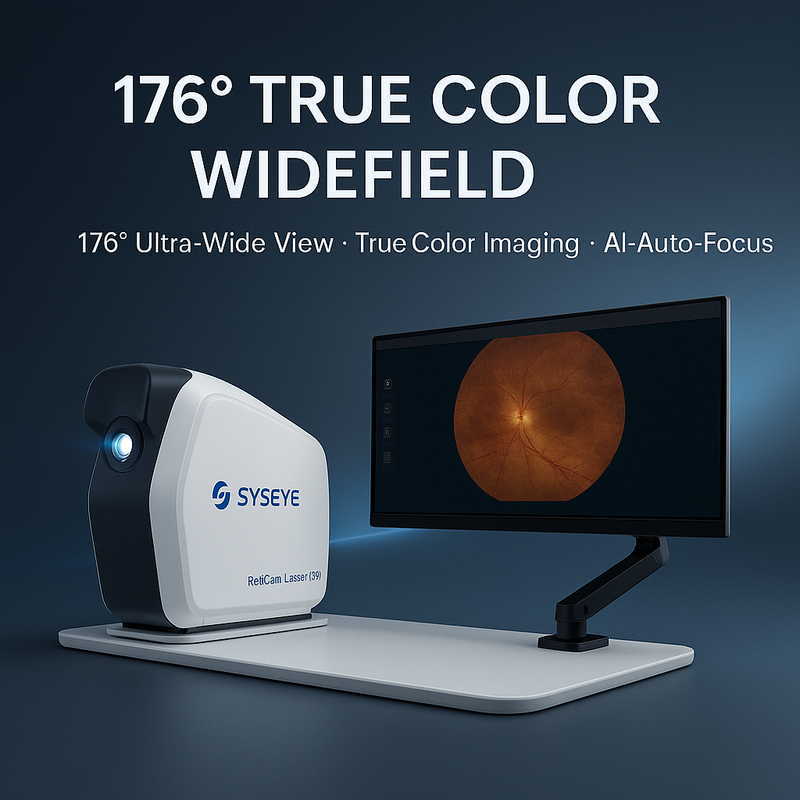 Cámara de Fondo de Ojo de Gran Angular de 176° con operación de un solo botón y capacidades de captura binocular, diseñada para investigación clínica oftalmológica avanzada.